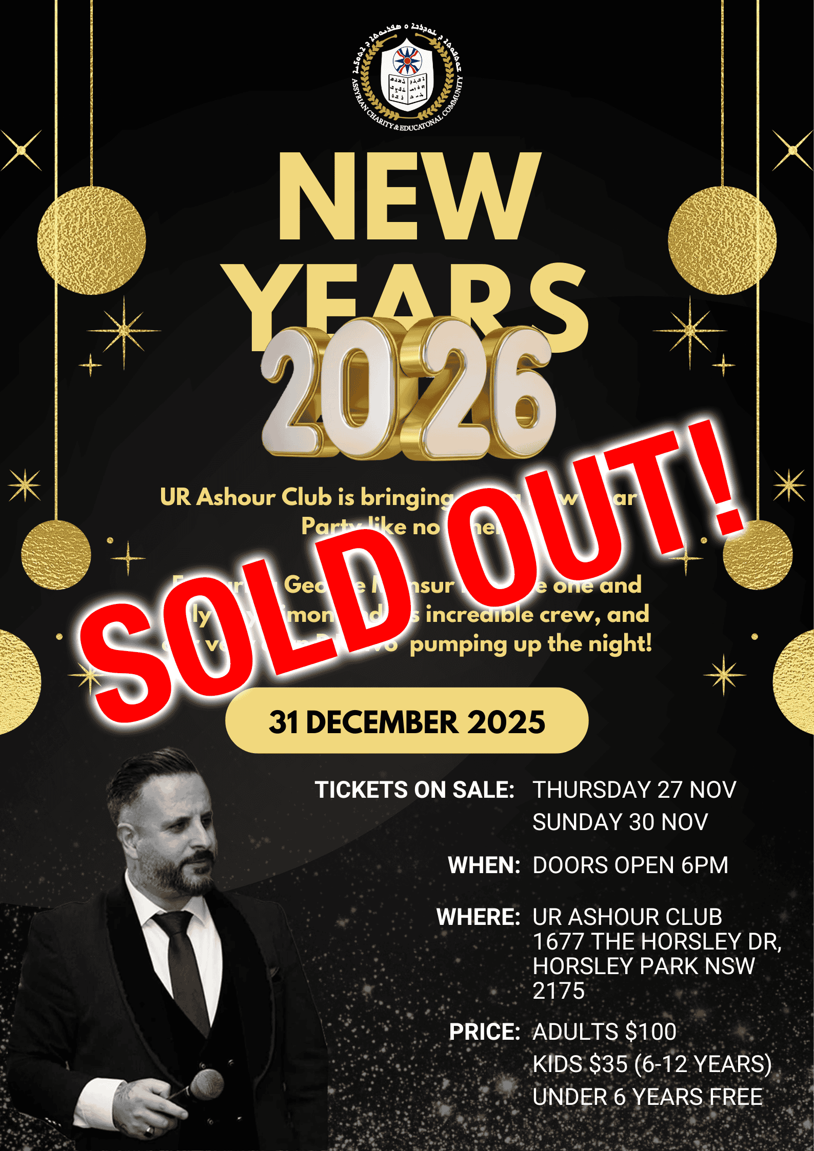 Ur Ashour 1677 The Horsley Drive, Horsley Park, New South Wales, Australia✨ Get Ready to Welcome 2026 in Style! ✨ UR Ashour Club is hosting a New Year’s Party like no other — featuring George Mansour live, the one and only Roy Simon and his incredible crew, and our very own DJ Givo Abdishou bringing the energy all night long! Expect music, excitement, dancing, and unforgettable […]